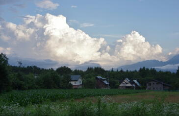 積雲の合間に秋の入り口を臭わすような高い青空が(8月下旬)