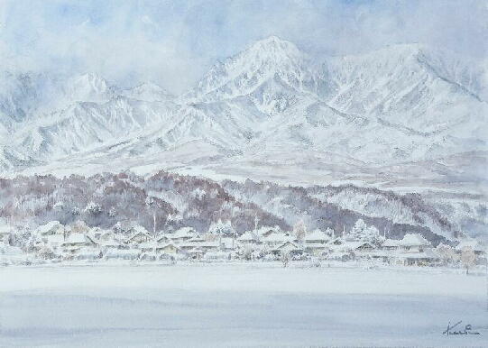 すわ出かけんと待機したまま,なかなかその機会を得ない。そこで、こういう雪景色を描きたいという思いで