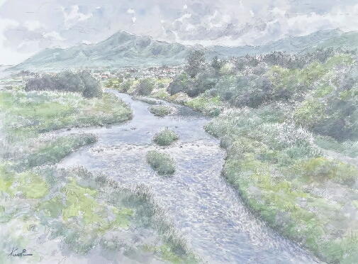 暑くなると水の風景を描きたくなるのは人情というものだ。川上村を流れる千曲川にかかる