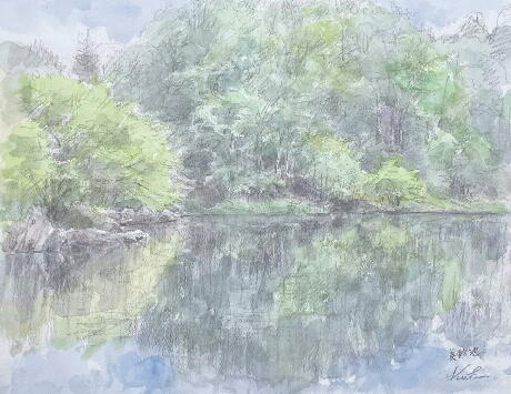 高原まで真夏日となったこの日、スケッチがてら涼を求めて美鈴池までやって来た。ここは
